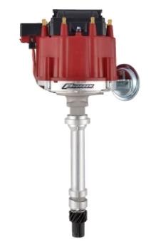 The Proform GM high performance distributor is designed to meet the high performance demands of racing competition, these units fit Chevy small block and big block engines. These 100% NEW distributors have all the reliable components of the 66940, but they also include a high power 50,000 volt coil. This high-performance distributor produces a 50,000 volt spark through 7,500 RPM with true spark alignment for instantaneous response, a high performance curve, a premium cap with brass terminals, and a low-saturation ignition module. All have die-cast aluminum housings, polished to a brilliant billet-look appearance.