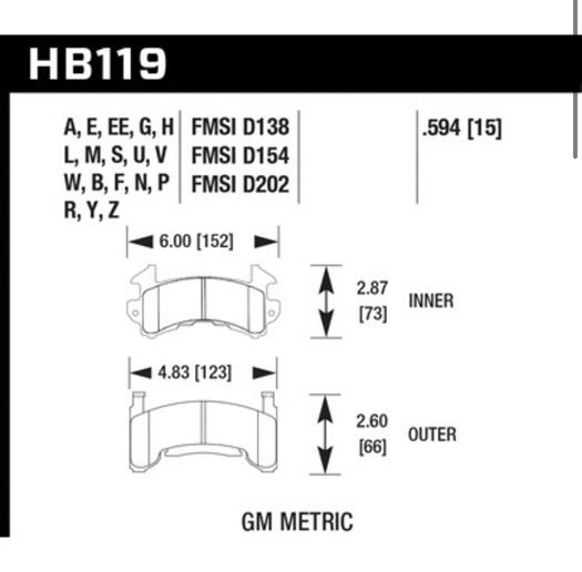 Brake Pads- DTC-30 Compound; Wide Temperature Range; GM Metric Caliper; Set of 4 (Enough for two wheels). Thickness: 0.594in