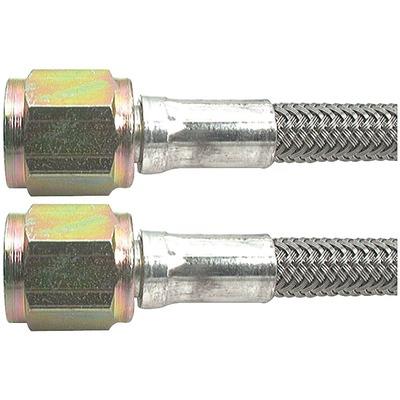 Brake Hose, 18in Long, 4 AN Hose, 4 AN Straight Female to 4 AN Straight Female, Braided Stainless, PTFE Lined
