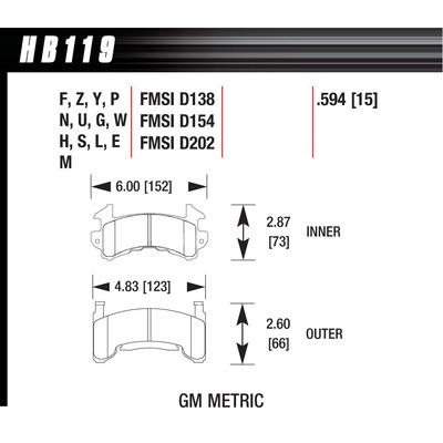 HAWK BRAKE PADS- METRIC GM- BLACK- Set of 4