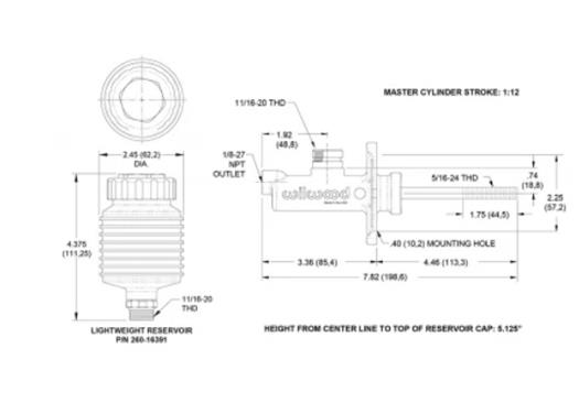 *Wilwood’s Compact Remote Master Cylinder is a staple of motorsports and custom builds. These kits come complete with a billet aluminum reservoir for direct mounting to the body. The finned shape of the reservoir removes weight and increases surface area for passive cooling.