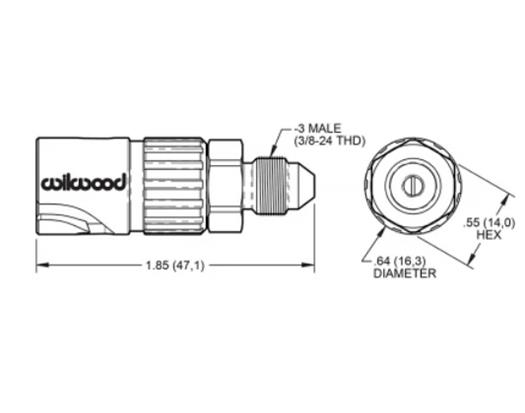 Wilwood dry break quick connect/disconnect -3 AN fittings make changing brake components faster with no need to bleed the system. A quick quarter-turn disconnects it, without tools, but they connect as secure as a threaded flex-line fitting. The internal spring-loaded seal prevents air from entering or fluid from escaping.